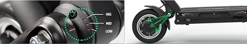 1. Улучшенная подвеска: изменение угла подвески по высоте, регулируется 3-мя уровнями (LOW, MID по умолчанию, HIG), адаптируясь под окружающую среду и вес водителя.